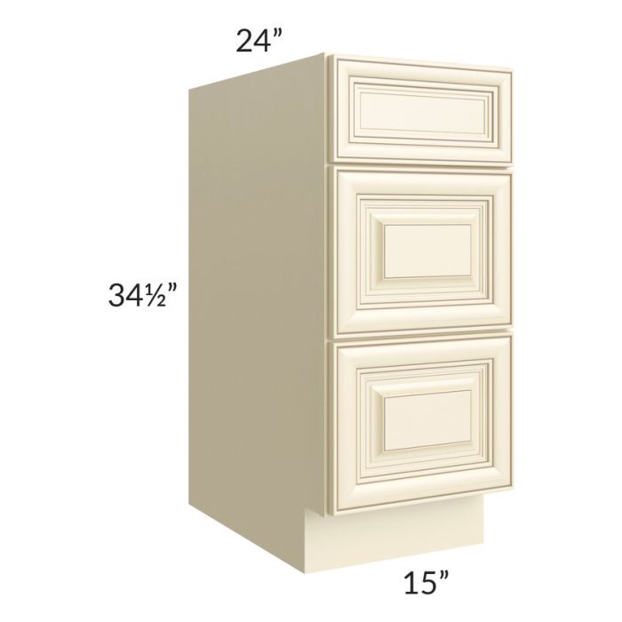 Description / Phoenix Cream Glaze 15" 3-Drawer Base Cabinet
