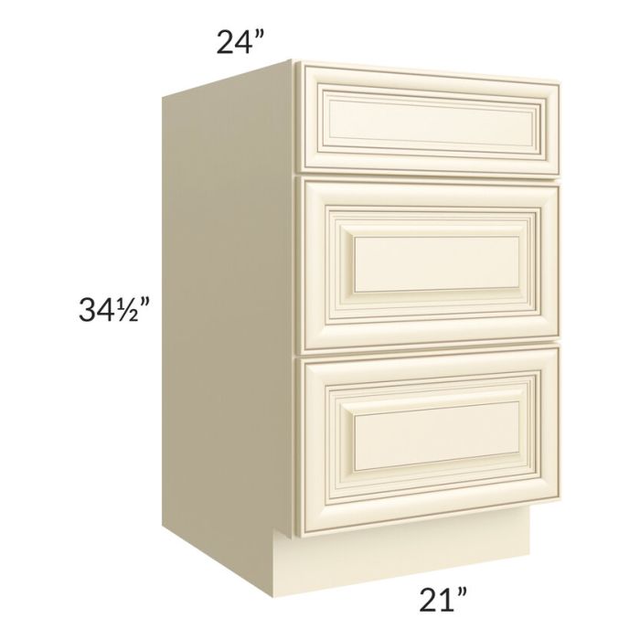 Description / Phoenix Cream Glaze 21" 3-Drawer Base Cabinet