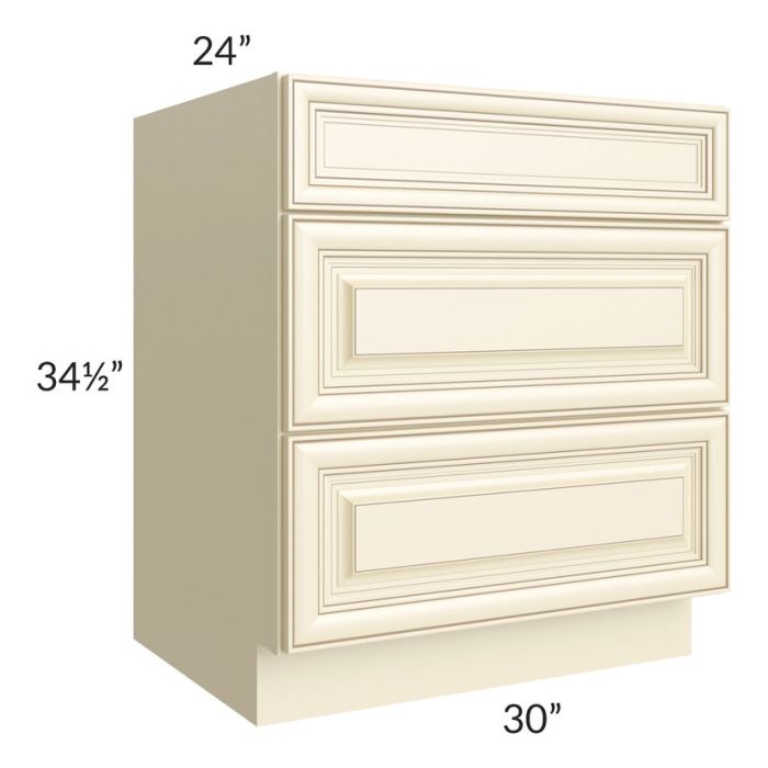 Phoenix Cream Glaze 30" 3-Drawer Base Cabinet