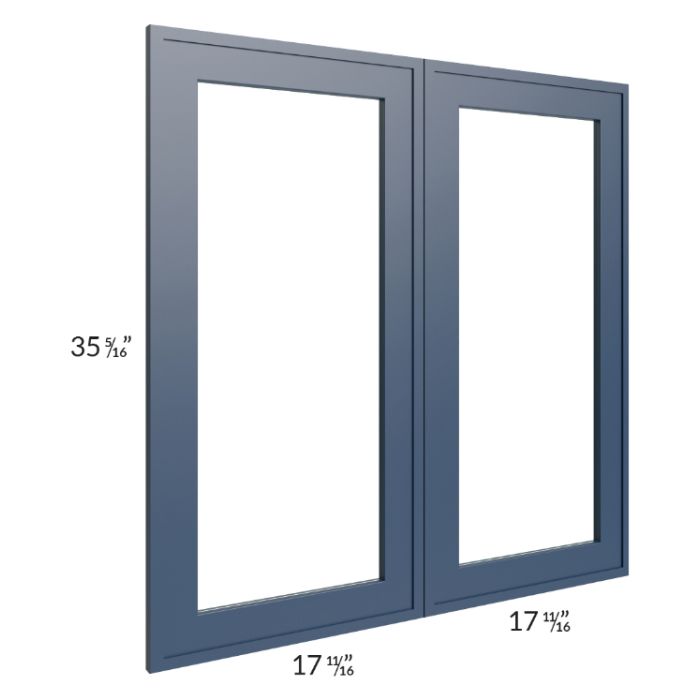Glass door for a wall cabinet that is 36" wide and 36" high. This is a 2 piece set with clear glass included. The actual cabinet must be purchased separately.