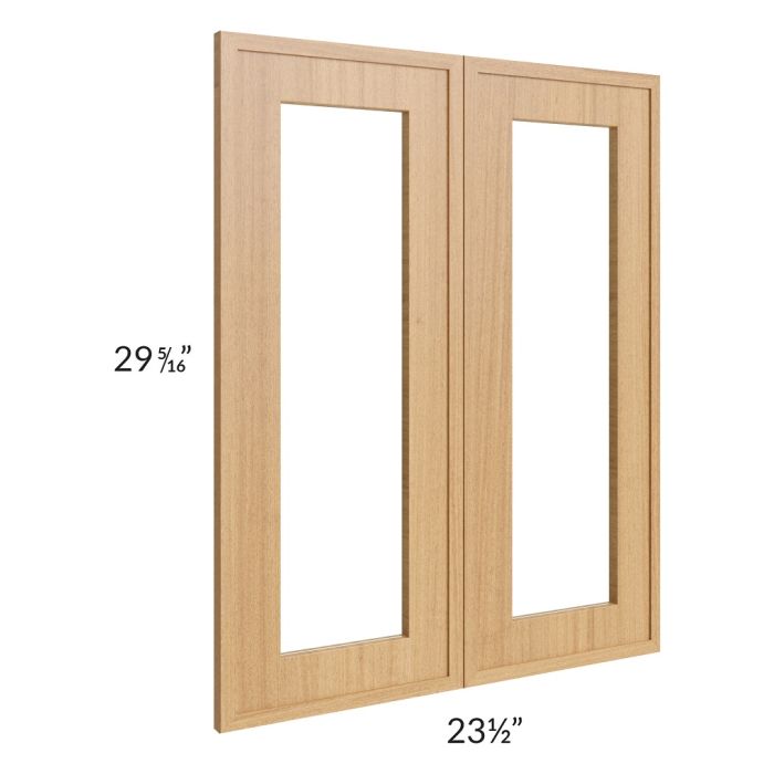 Glass doors for a wall cabinet that is 24" wide and 30" high. Clear glass is included. The actual cabinet must be purchased separately.