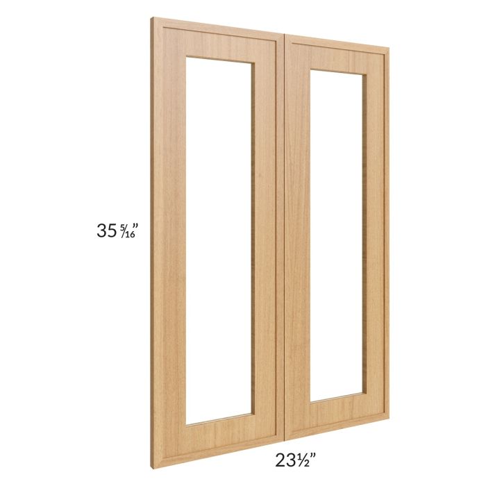 Glass doors for a wall cabinet that is 24" wide and 36" high. Clear glass is included. The actual cabinet must be purchased separately.