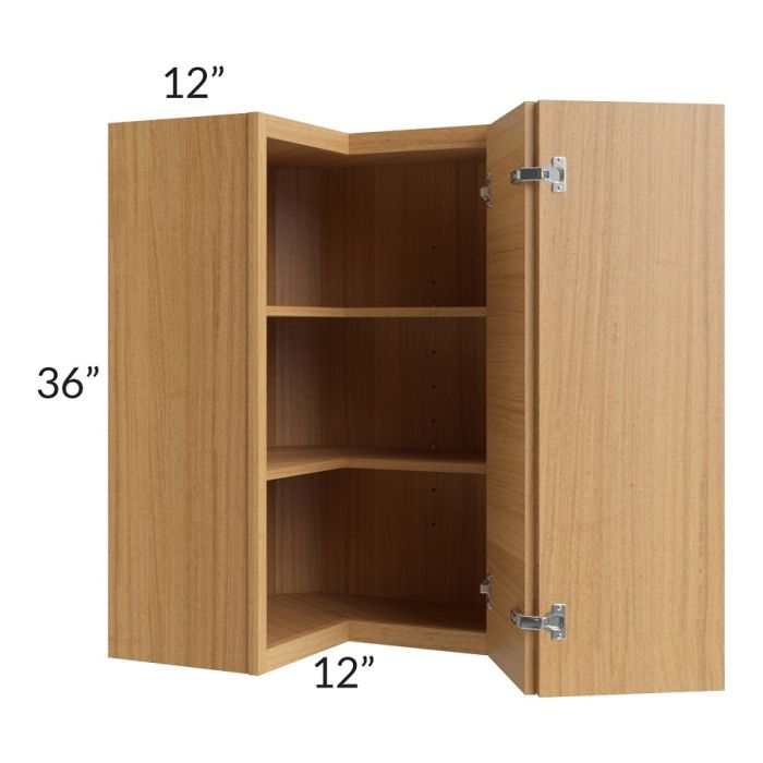 Wall corner cabinet with a 90 degree, bi-fold door. The cabinet will have 2 shelves. It will take up 24" of wall space out from each corner.