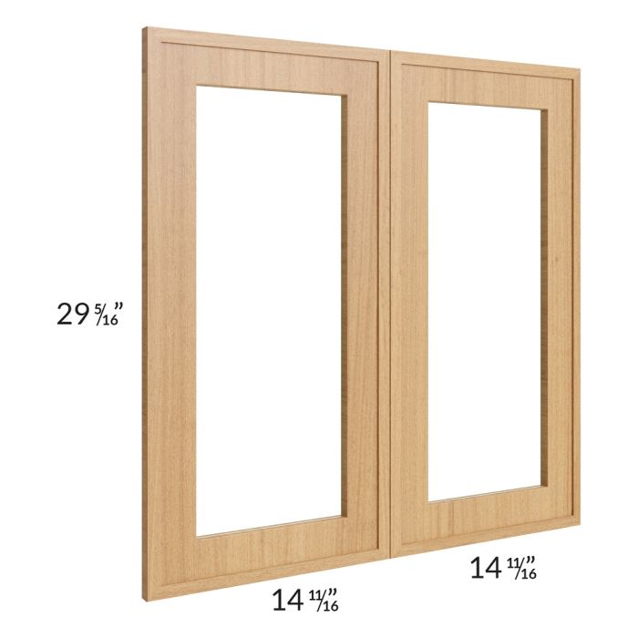 Glass door for a wall cabinet that is 30" wide and 30" high. This is a 2 piece set with clear glass included. The actual cabinet must be purchased separately.