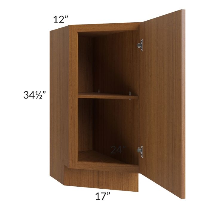 Full height door cabinet that is meant to be used at the end of a cabinet run. It will have a 24" deep side on the right which gets installed against the adjacent cabinet. The door is angled and the exposed side of the cabinet (on the left) will be 12" deep. Comes with 1 shelf.