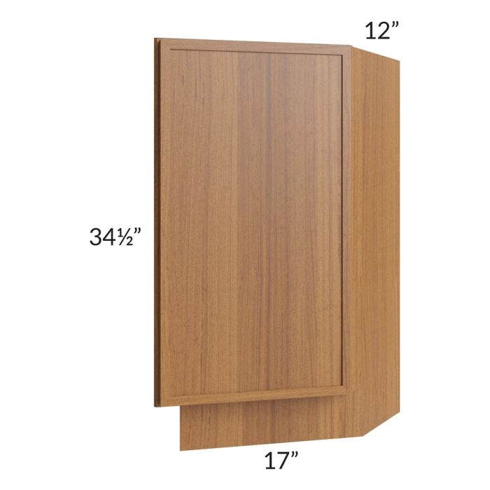 Full height door cabinet that is meant to be used at the end of a cabinet run. It will have a 24" deep side on the left which gets installed against the adjacent cabinet. The door is angled and the exposed side of the cabinet (on the right) will be 12" deep. Comes with 1 shelf.