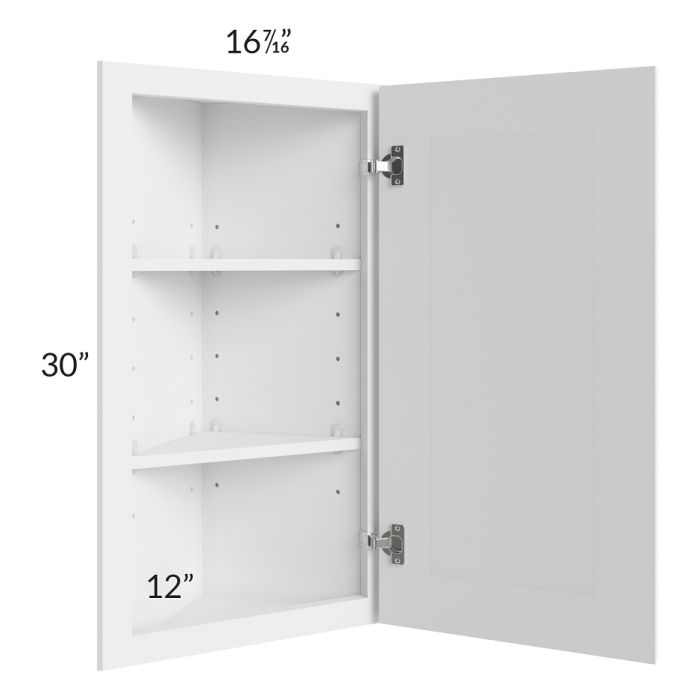 1 door angle wall cabinet that has 2 shelves. The door width is about 16-7/16".