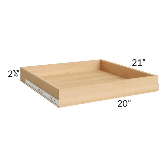 Roll out tray to be used with a 24"W base cabinet or a 24"W pantry cabinet . The roll out tray will come pre-assembled, dovetailed, and have a soft close full extension track. They are solid birch with a natural maple finish. *Please note this roll out tray will only work with this collection*