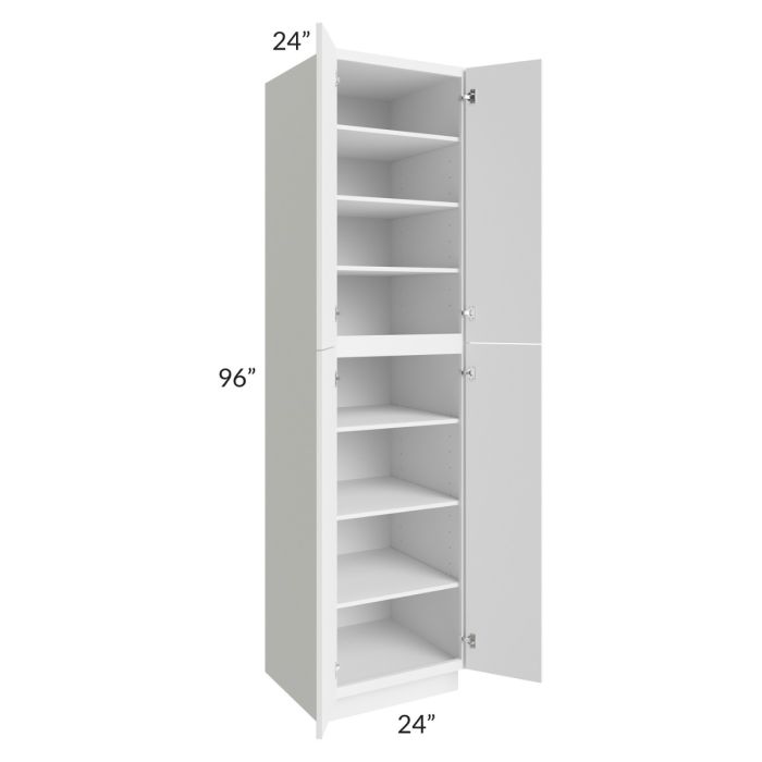 Wall pantry cabinet that has 4 doors, 2 smaller doors on top and 2 larger doors on bottom.This pantry cabinet comes with 1 fixed shelf and 6 adjustable shelves. Measurements are as follows: Top/Middle/Bottom door width is 11-11/16". Top door height is 41-5/16". Middle/Bottom door height is 49-1/4".