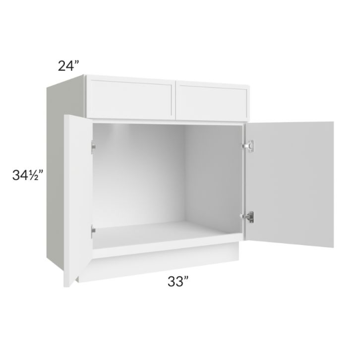 2 door sink base cabinet that comes with 2 false drawer front and no shelves or center stile. This cabinet does have a full 1/2" back.