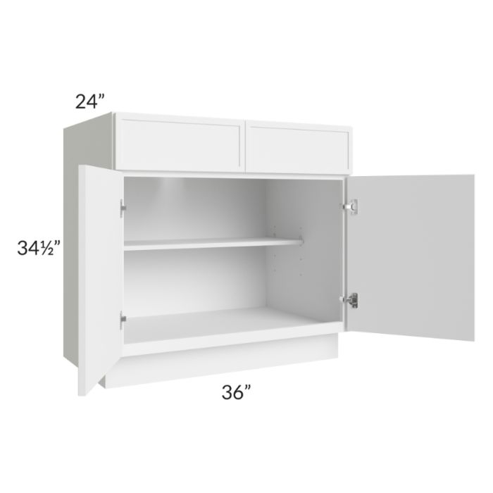 2 door base cabinet with 2 drawer and 1 shelf. There is no center stile on this cabinet.