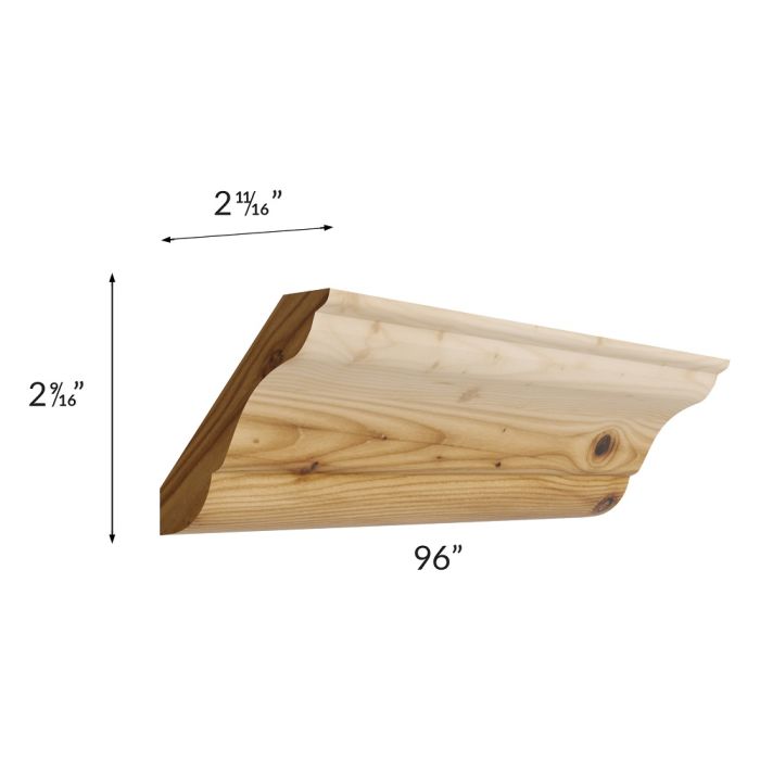 Crown molding. Installed height will be 2-9/16" and installed depth will be 2-11/16" (how far out it will extend from the cabinet).