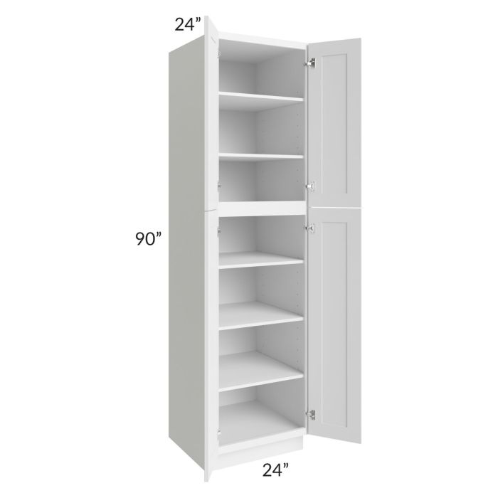 Wall pantry cabinet that has 4 doors, 2 smaller doors on top and 2 larger doors on bottom. This pantry cabinet comes with 1 fixed shelf and 5 adjustable shelves. There is no center stile. Measurements are as follows: Top/Middle/Bottom door width is 11-11/16". Top door height is 35-5/16". Middle/Bottom door height is 49-1/4".