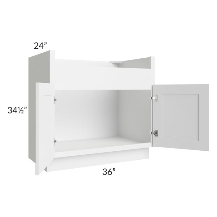 Farm sink base cabinet that will fit most farm sinks that are 30" to 33" wide. The tallest farm sink that will work with this cabinet is 10-3/4". Doors are each 17-7/10"W x 19"H. The height from the door cutout to the top of the face frame is 11-1/4". The width of the top opening is 29-3/4". The height from the top of the opening to where the horizontal stile begins is 2-7/8", and the stile height is 8-3/8".