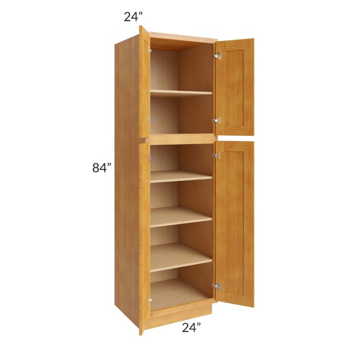 Wall pantry cabinet with (4) doors, (2) 29"H doors on top and (2) 49-3/16"H doors on bottom. This pantry cabinet comes with 4 adjustable shelves.