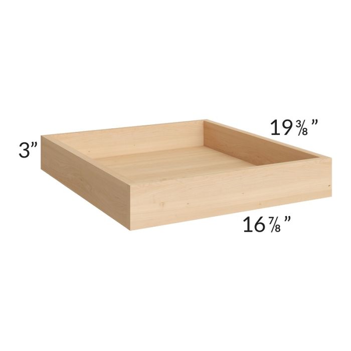 Roll out tray for a 21" base cabinet. Glides will be ball bearing glides and are not soft-close.