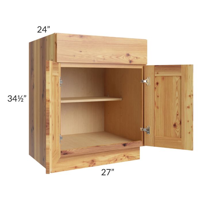 2 door base cabinet that has a half depth adjustable shelf and 1 drawer.