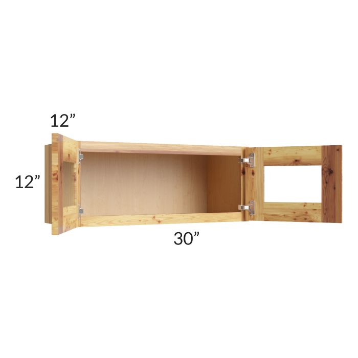 Rustic Shaker 30x12 Decorative Wall Cabinet with Plain Glass