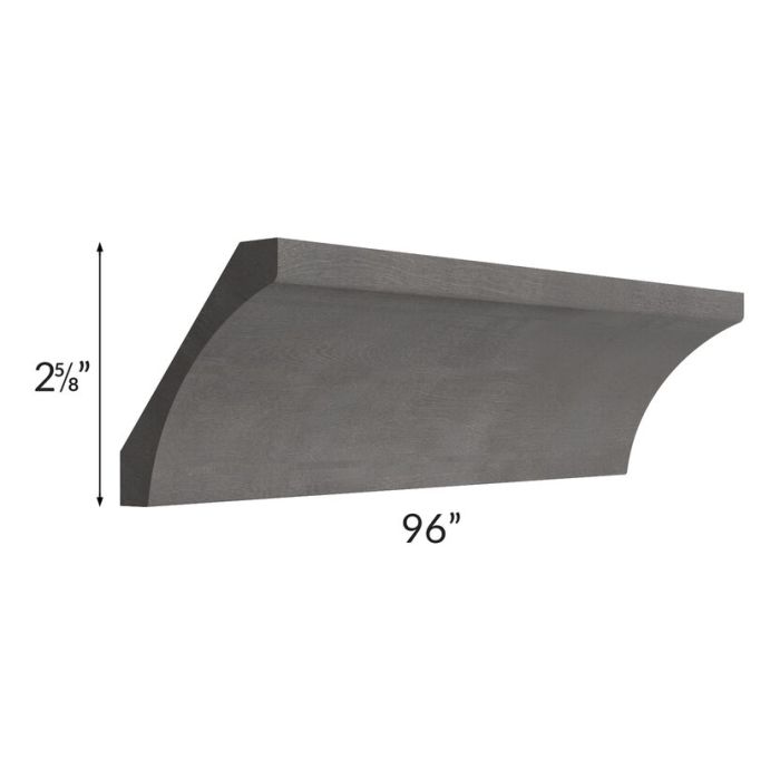 Cove crown molding, when installed, it will be 2-1/2" high and will stick out from the cabinet 2-7/8".