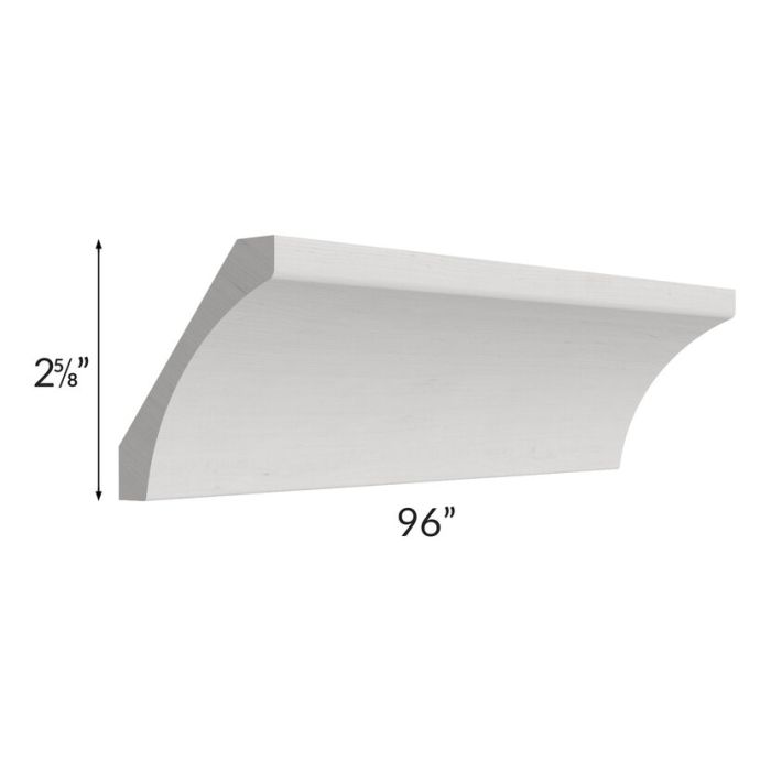 Cove crown molding, when installed, it will be 2-1/2" high and will stick out from the cabinet 2-7/8".