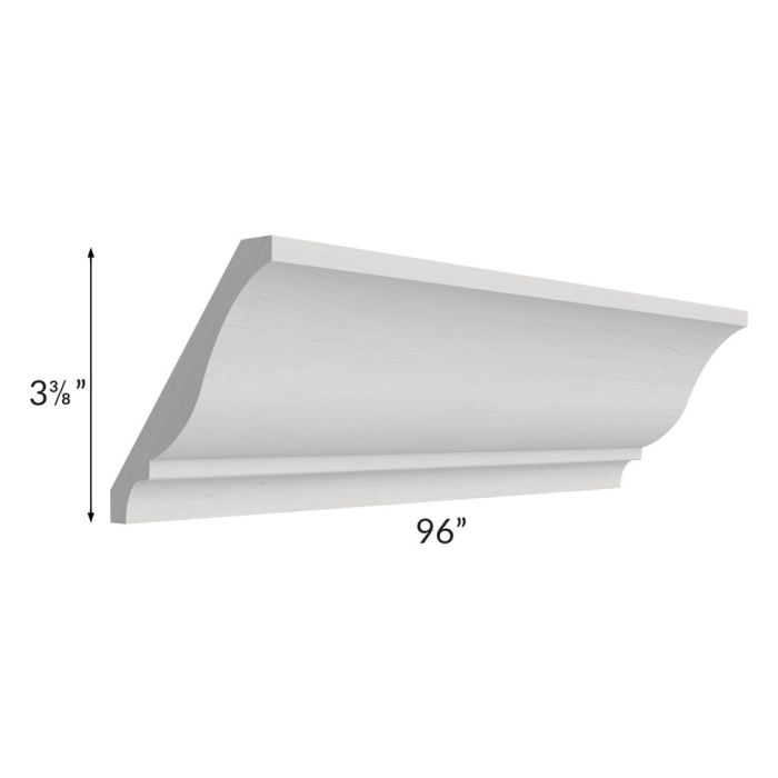 Large crown molding, when installed, it will be 3-3/8" high and will stick out from the cabinet 3".