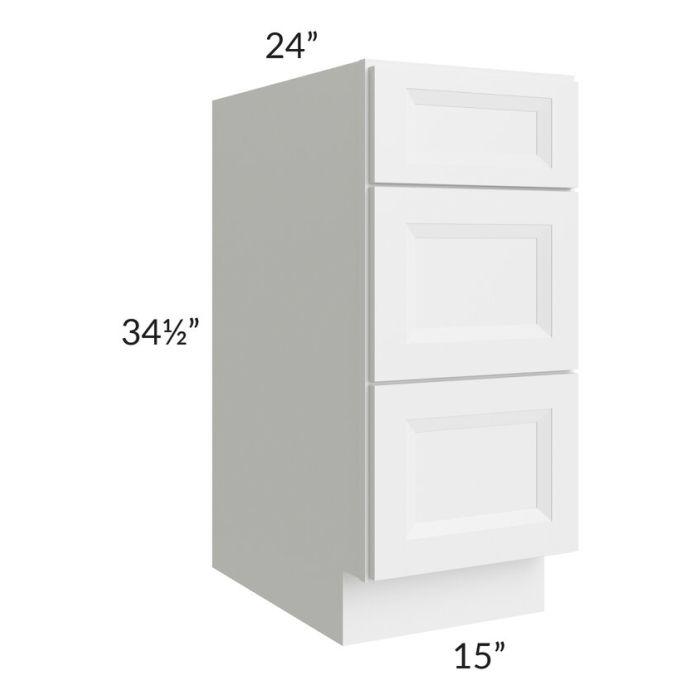 3 drawer base cabinet. Top drawer front is 6-3/4" high, middle and bottom drawer fronts are 11-1/4" high.