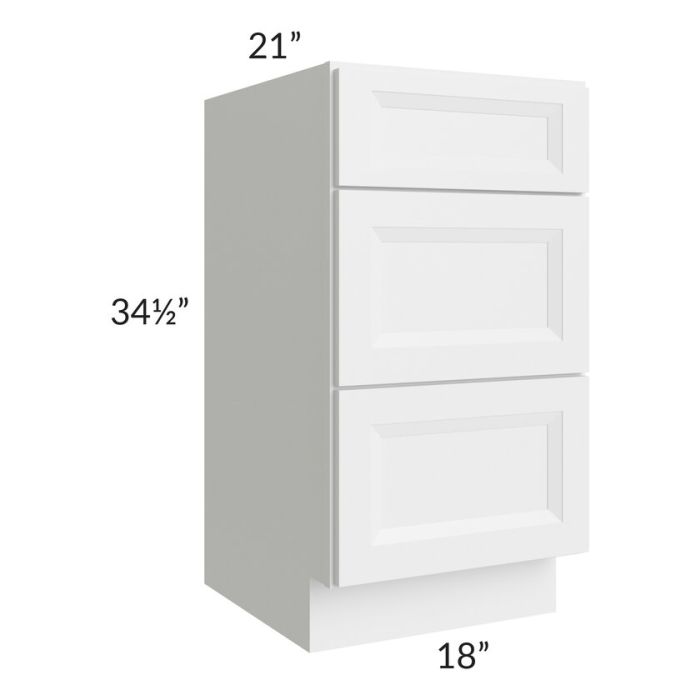 Salem White 18" Vanity 3-Drawer Base Cabinet