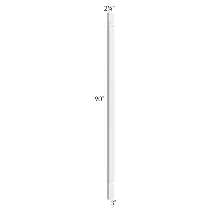 Tall plain pilaster. The filler the pilaster is mounted on is 3/4" deep, the pilaster itself is 1-1/2" deep. Top section above the pilaster is 4" tall, and bottom section below the pilaster is 6-1/4" tall. 2" will need to be trimmed from the top or bottom before installation. **Pilasters are handmade and may therefore feature inconsistencies in shape or form. These are in no way considered defects**