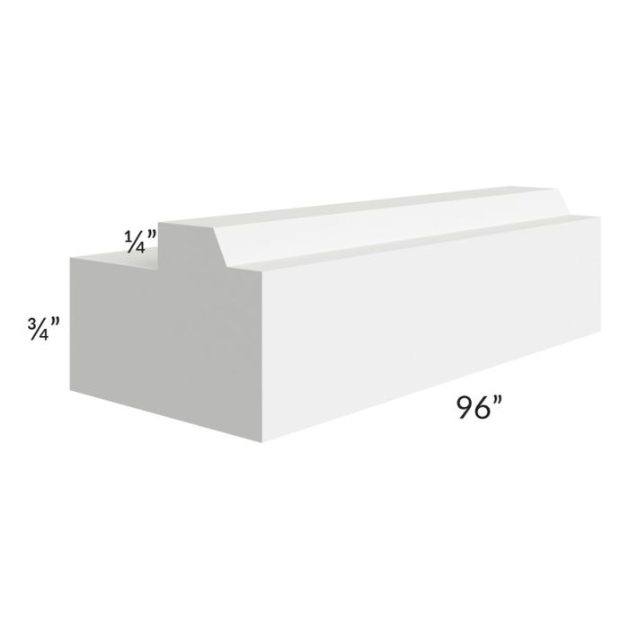 Light rail molding, overall depth is 1-1/2", the flat part that will install under the wall cabinets is 3/4" deep. The lip that will extend over the front of the wall cabinet is 1/4" high.