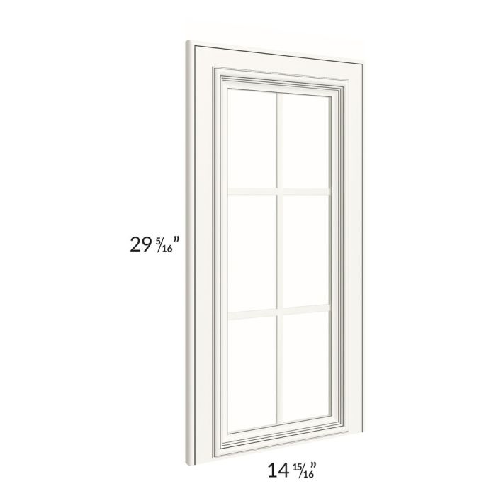 Mullion glass door for a corner wall cabinet that is 24" wide and 30" high (actual glass door measurements are 14 15/16W" x 29 5/16H"). Clear glass is included. The actual cabinet must be purchased separately.