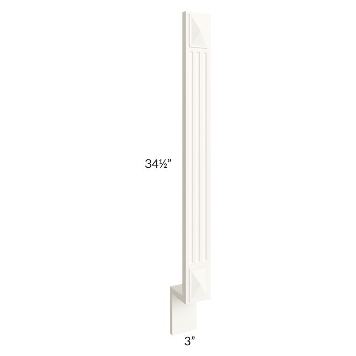 Fluted decorative base filler with rosette. Commonly used to fill gaps between cabinets and gaps between cabinets and appliances.