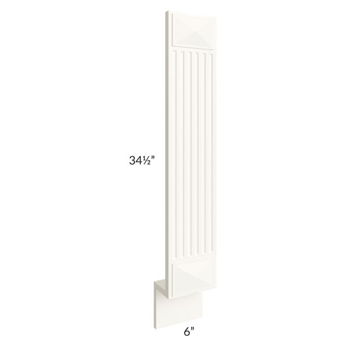 Fluted decorative base filler with rosette. Commonly used to fill gaps between cabinets and gaps between cabinets and appliances.