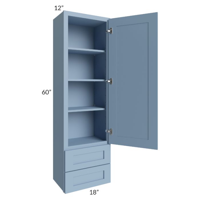 Description / Sky Blue Shaker 18x60 Wall Cabinet With Drawers