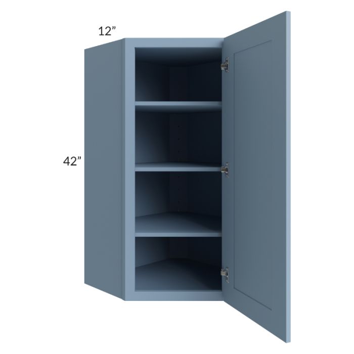 Description / Sky Blue Shaker 24x42 Wall Diagonal Corner Cabinet