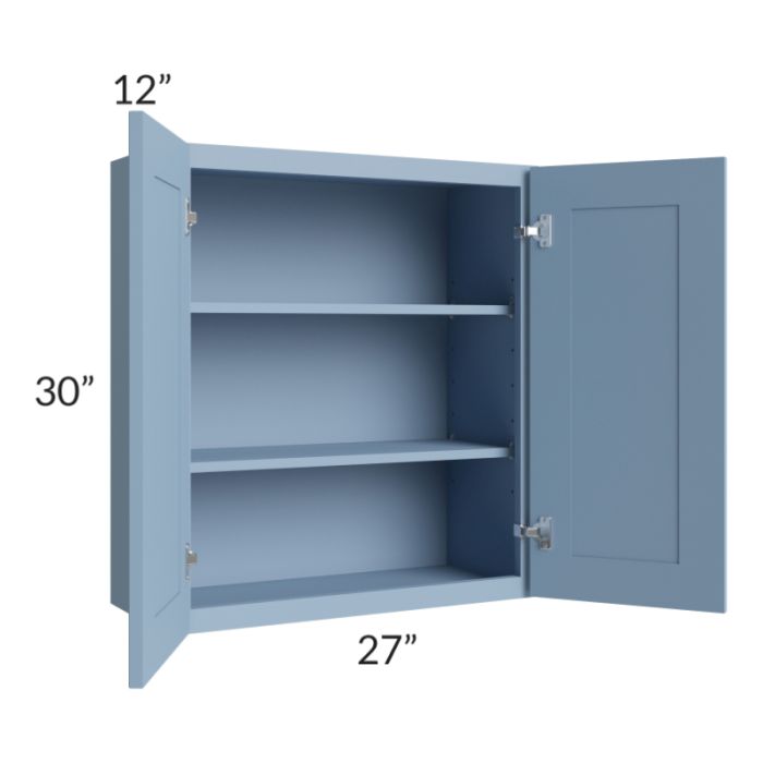 Description / Sky Blue Shaker 27x30 Wall Cabinet