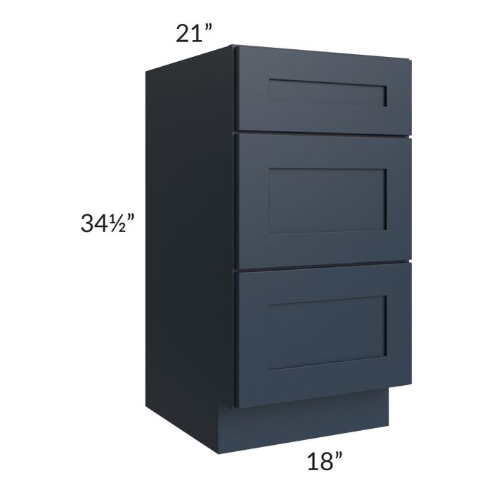 Southport Blue Shaker 18" Vanity 3-Drawer Base Cabinet
