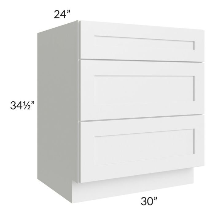 Southport White Shaker 30" 3-Drawer Base Cabinet