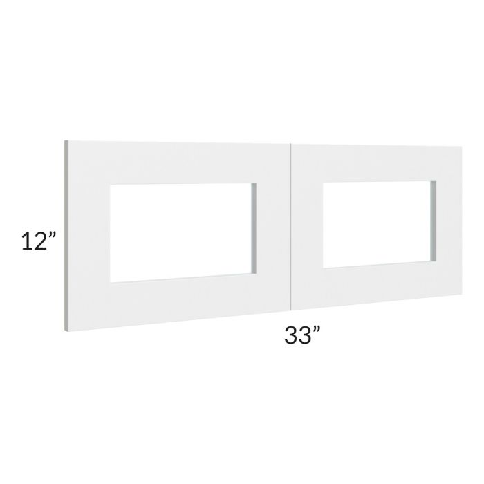 Glass doors for a wall cabinet that is 33" wide and 12" high. Frosted glass is included. The actual cabinet must be purchased separately.