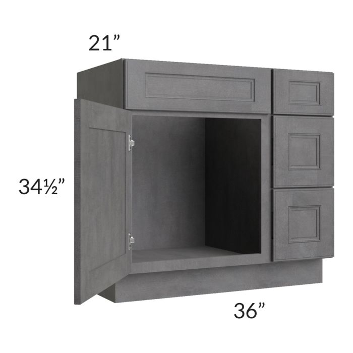 Stone Grey 36" Vanity Sink Base Cabinet (Drawers on Right)