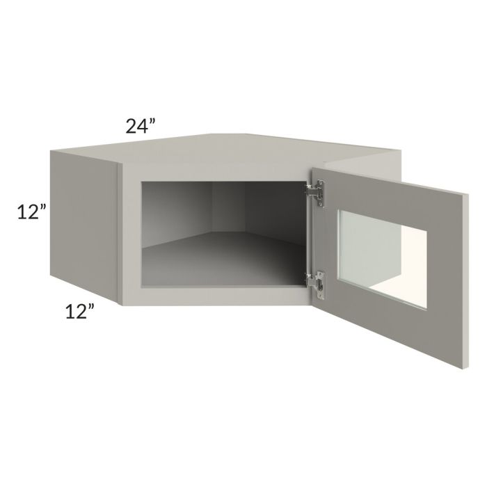 Decorative wall diagonal corner cabinet. The door will be routed for glass and the interior will be finished. This cabinet is meant to be stacked on top of or used with a 24" wall diagonal corner cabinet. **Glass is not included**