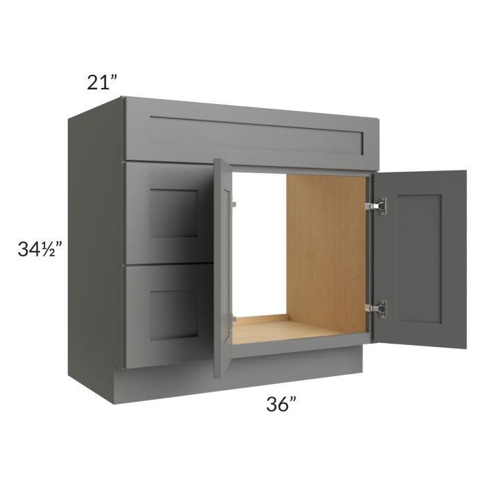Stratton Dark Grey Shaker 36" Vanity Sink Base Cabinet with Drawers on the Left