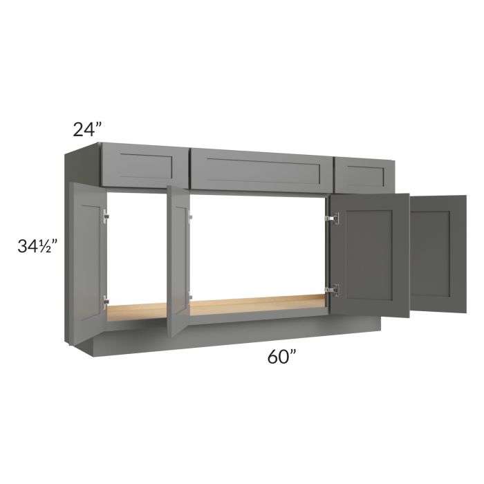 Description / Stratton Dark Grey Shaker 60" Sink Base Cabinet