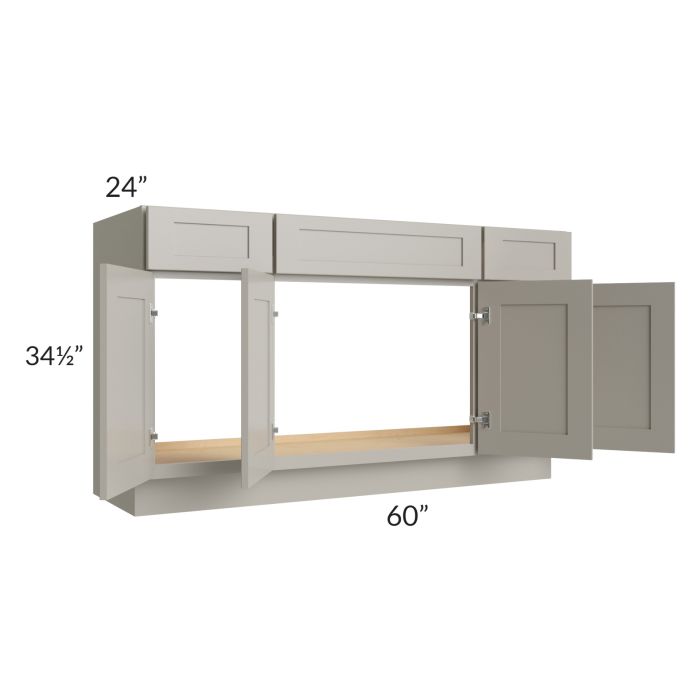 Description / Stratton Light Grey Shaker 60" Sink Base Cabinet