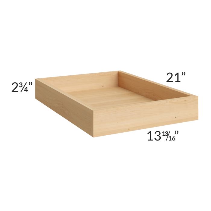 Roll out tray in a natural finish, to be used with an 18" base cabinet or pantry cabinet (will not have soft close glides). Quanity of 1 per order.