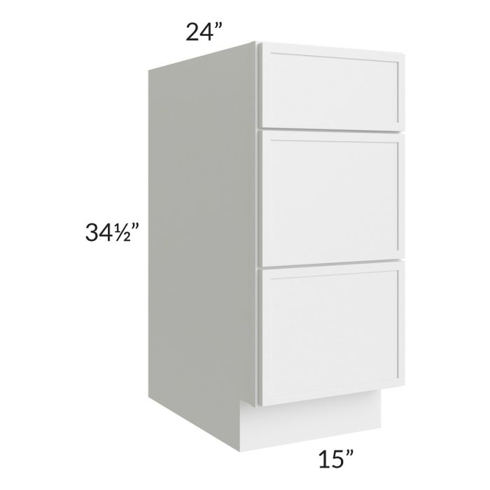 3 drawer base cabinet that has (1) 6-1/2" drawer on top and (2) 10-3/4" drawers on bottom.