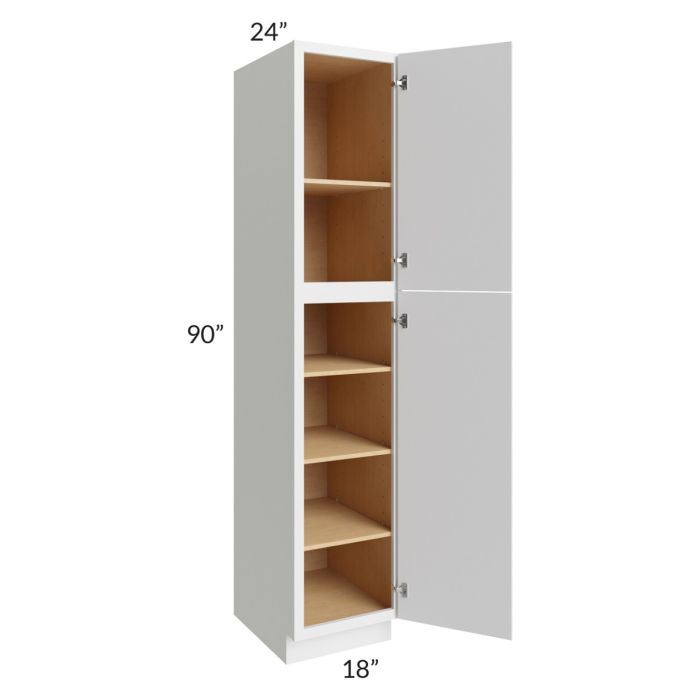 Wall pantry cabinet that has 2 doors (smaller door on top and larger door on bottom) and 4 adjustable shelves.