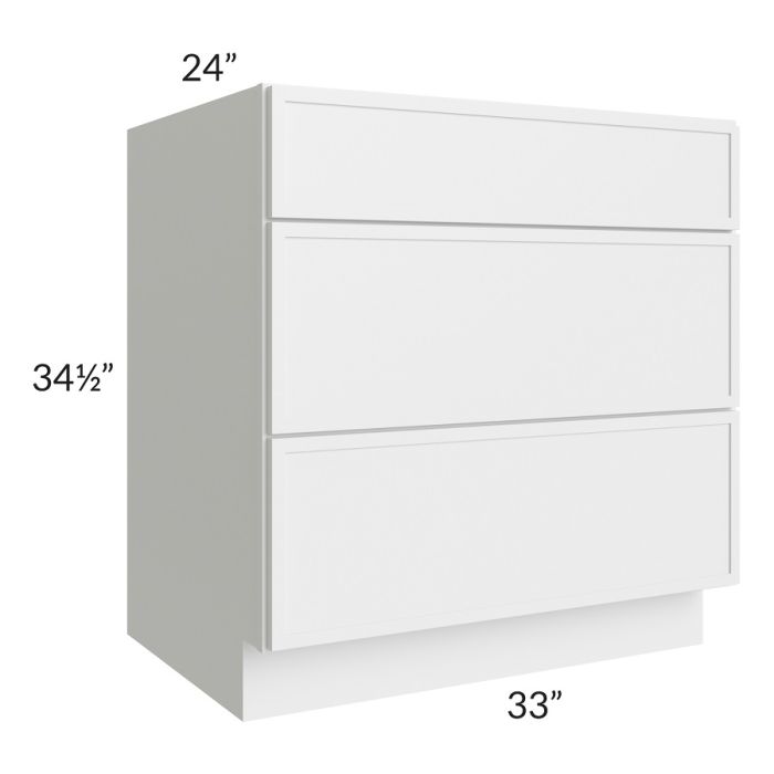 3 drawer base cabinet that has (1) 6-1/2" drawer on top and (2) 10-3/4" drawers on bottom.