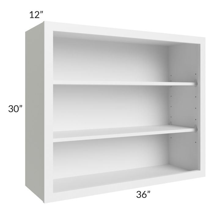 Wall open cabinet that comes with a finished interior and 2 adjustable shelves.