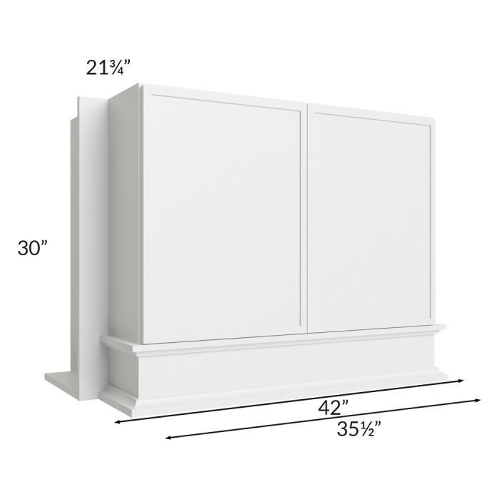 Wood hood that will be 42" wide when 3" fillers are installed on either side of the hood. Fillers will be included and can be cut down to a minimum of 1" on each side.