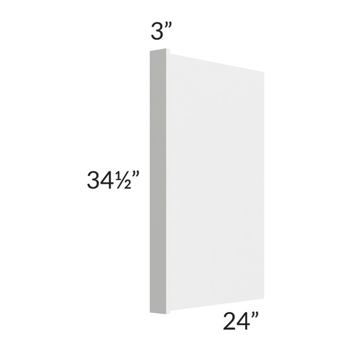 Dishwasher end panel with a 3" wide filler on the front. Can be installed on the left or right. Commonly used next to an exposed appliance, like a dishwasher.
